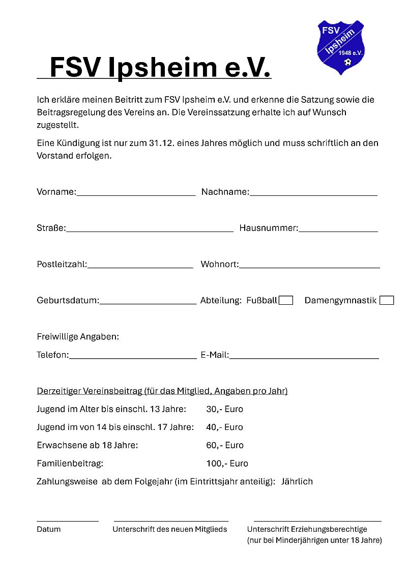 Hier kannst Du bequem online die Mitgliedschaft im FSV beantragen. Wir schicken Dir dann per Email eine Bestätigung und alle erforderlichen Unterlagen zu (Spielerpassbeantragung, Datenschutzerklärung, SEPA-Mandat usw.). Rechtlicher Hinweis: Erst mit Ausfüllen dieser Unterlagen ist ein Vertrag zustande gekommen.